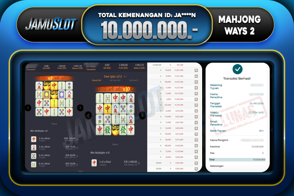 Bukti JP MAHJONG WAYS 2 Di Bayar LUNAS Situs JamuSlot Amanah Sebesar Rp.10.000.000,-
