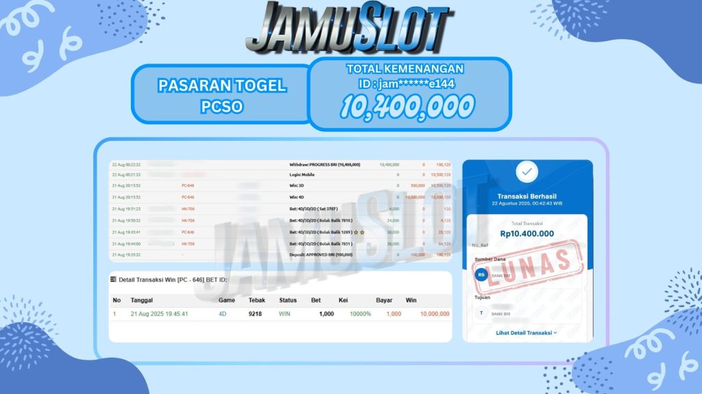 BUKTI PEMBAYARAN JAMUSLOT BUKAN KALENG KALENG INI BOSKU, MENANG BERAPAPUN PASTI DI BAYAR TUNTAS !!! Daftar Akun JAMUSLOT Info Menarik bagi kalian yang tertarik untuk main togel online di BO Togel Terpercaya JAMUSLOT, bisa join member dengan lakukan pendaftaran terlebih dahulu. Proses buat akun sangat cepat dan aman. Gunakan data pribadi yang lengkap untuk pembuatan …