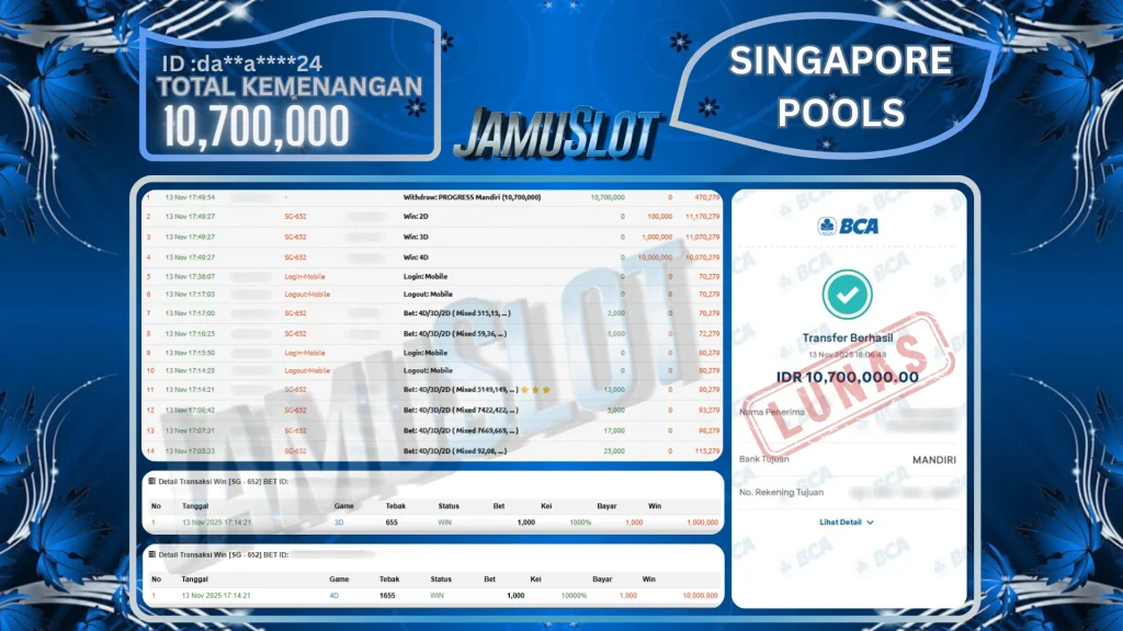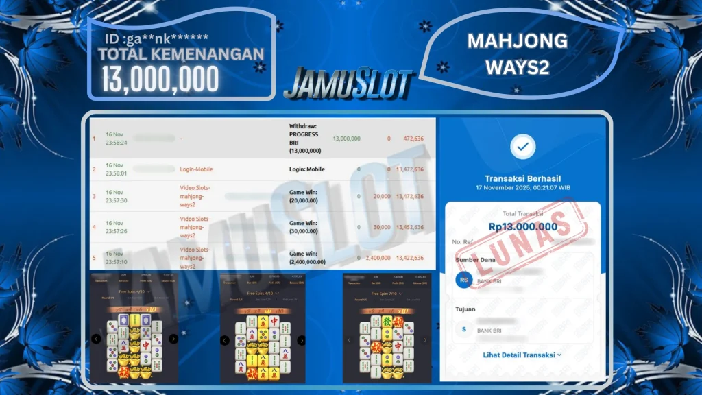BUKTI PEMBAYARAN KEMENANGAN JP MAHJONG WAYS2 13.000.000,- LUNAS