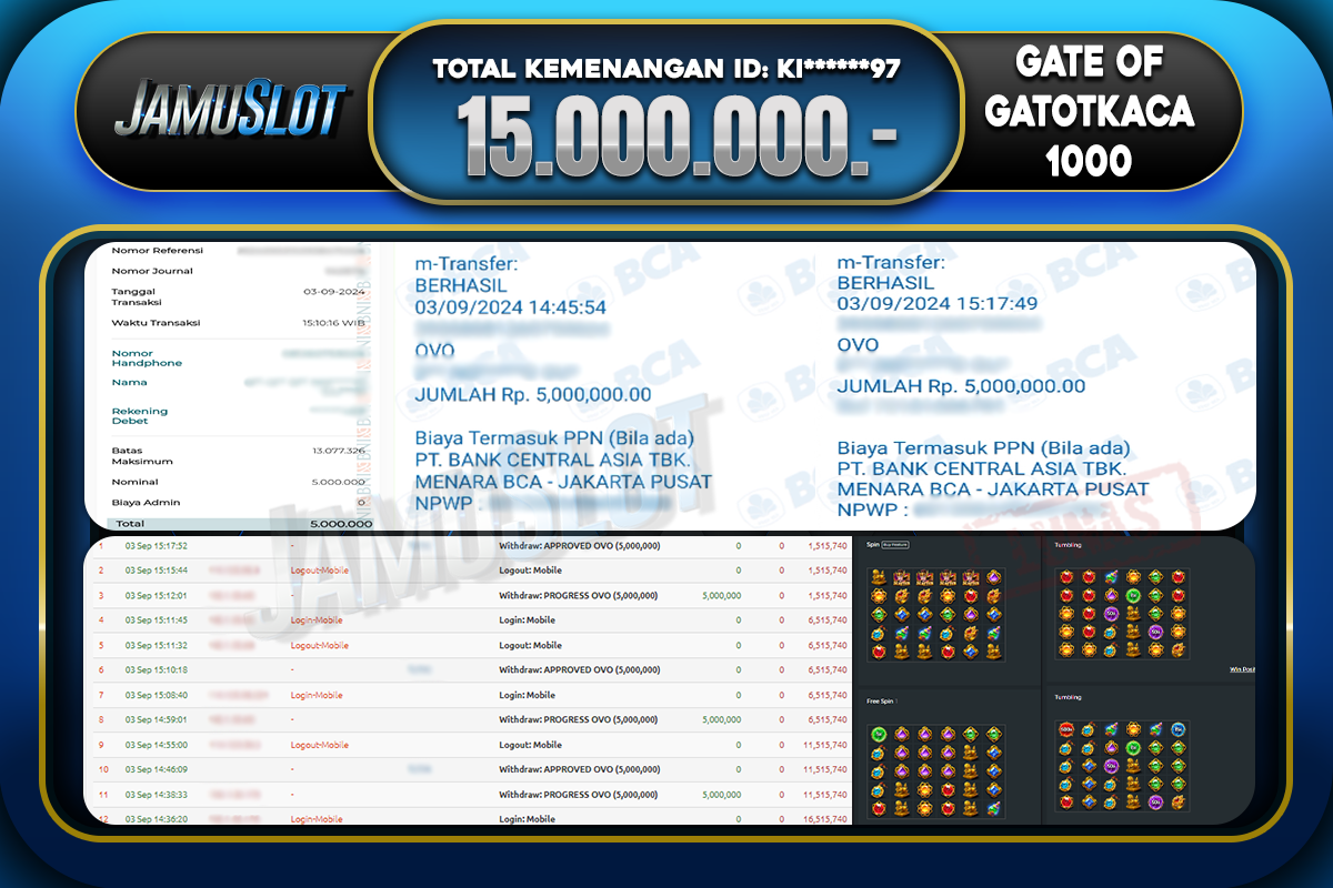 Bukti JP GATE OF GATOTKACA 1000 Di Bayar LUNAS Situs JamuSlot Amanah Sebesar Rp.15.000.000,-