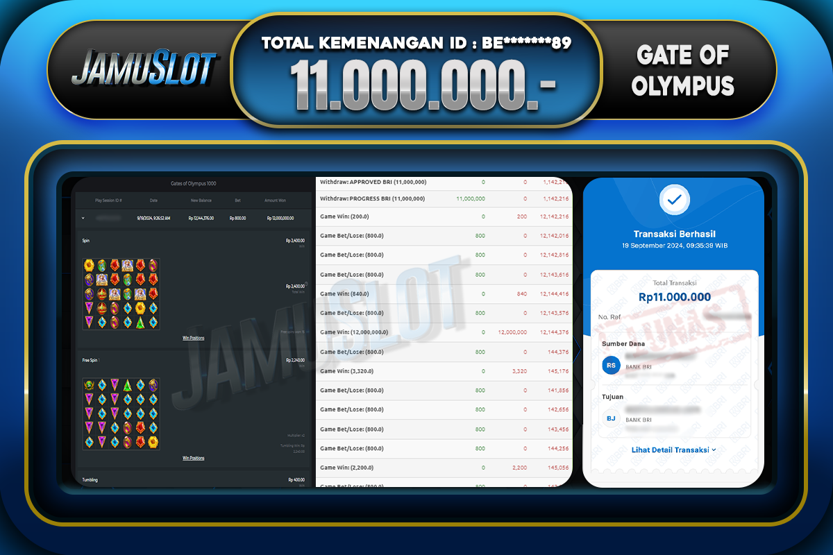 Bukti JP GATE OF OLYMPUS Di Bayar LUNAS Situs JamuSlot Amanah Sebesar Rp.11.000.000,-