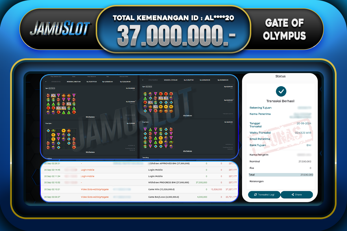 Bukti JP GATE OF OLYMPUS Di Bayar LUNAS Situs JamuSlot Amanah Sebesar Rp.37.000.000,-