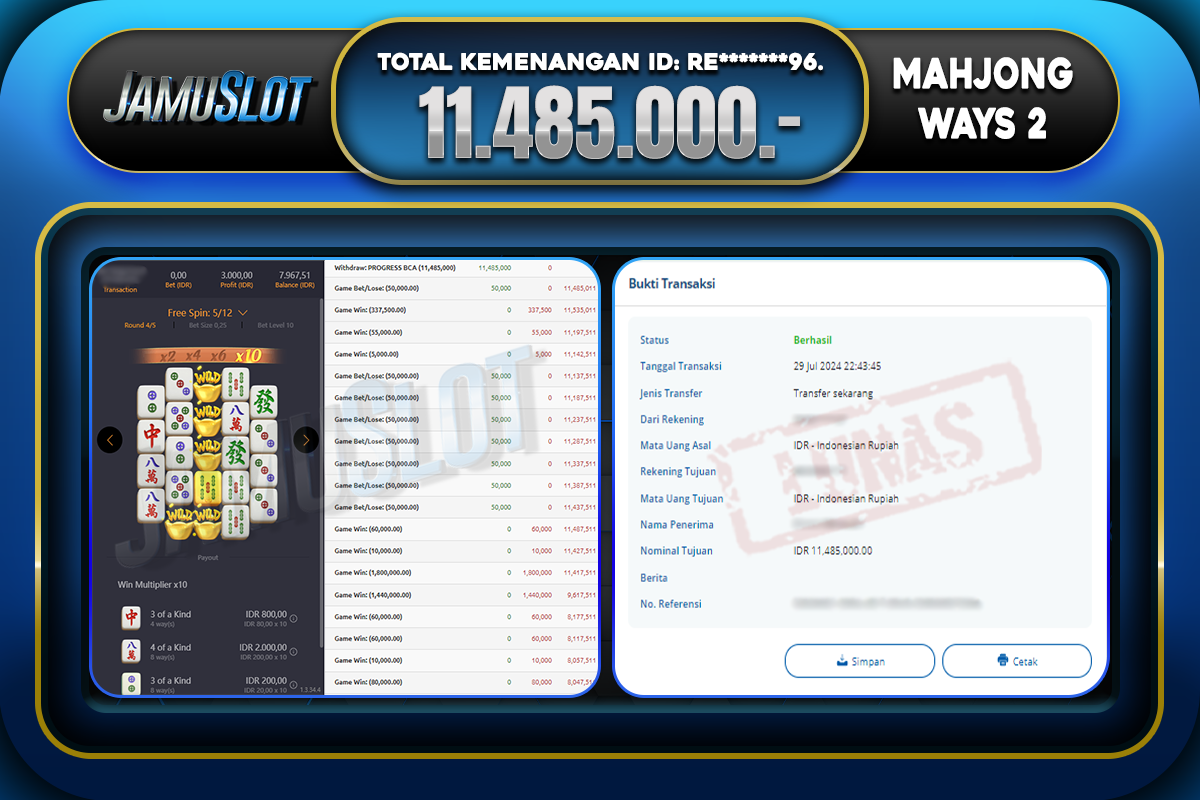 Bukti JP MAHJONG WAYS 2 Di Bayar LUNAS Situs JamuSlot Amanah Sebesar Rp.11.485.000,-