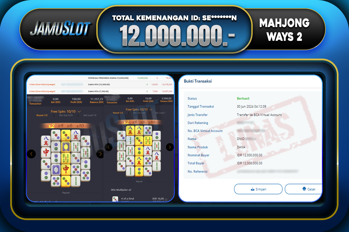 Bukti JP MAHJONG WAYS 2 Di Bayar LUNAS Situs JamuSlot Amanah Sebesar Rp.12.000.000,-