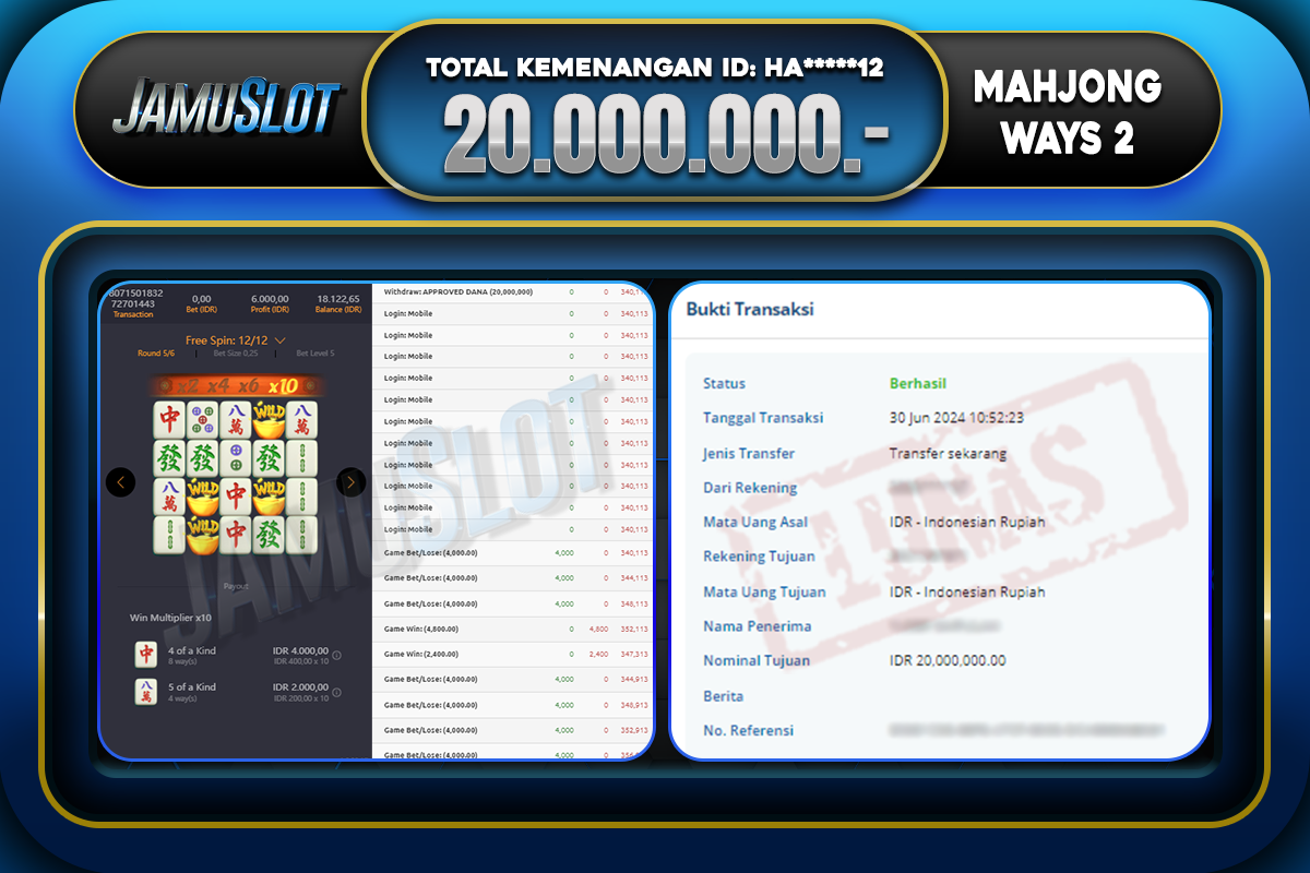 Bukti JP MAHJONG WAYS 2 Di Bayar LUNAS Situs JamuSlot Amanah Sebesar Rp.20.000.000,-