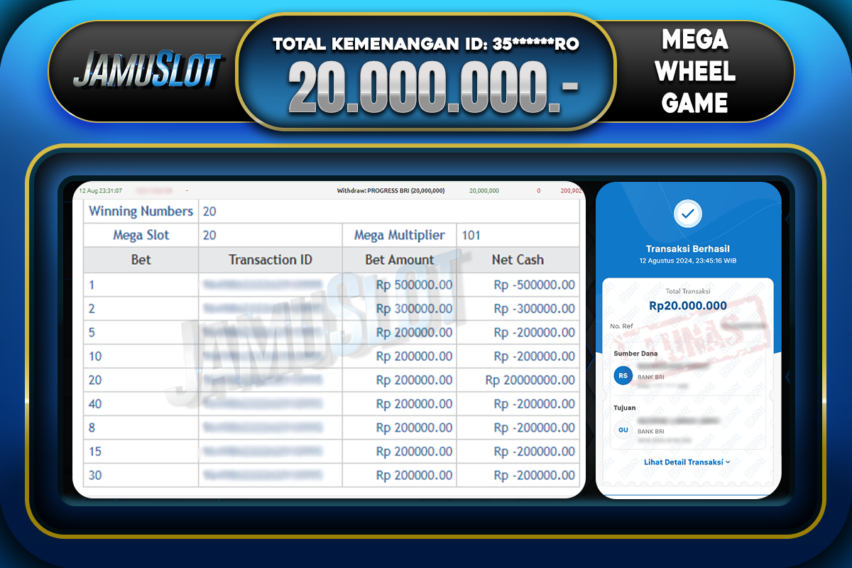 Bukti JP MEGA WHEEL GAME Di Bayar LUNAS Situs JamuSlot Amanah Sebesar Rp.20.000.000,-