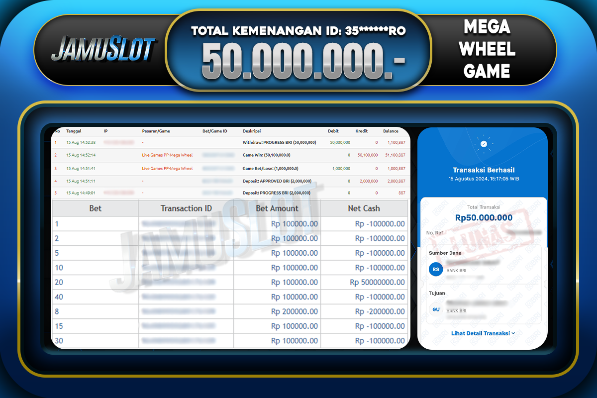 Bukti JP MEGA WHEEL GAME Di Bayar LUNAS Situs JamuSlot Amanah Sebesar Rp.50.000.000,-
