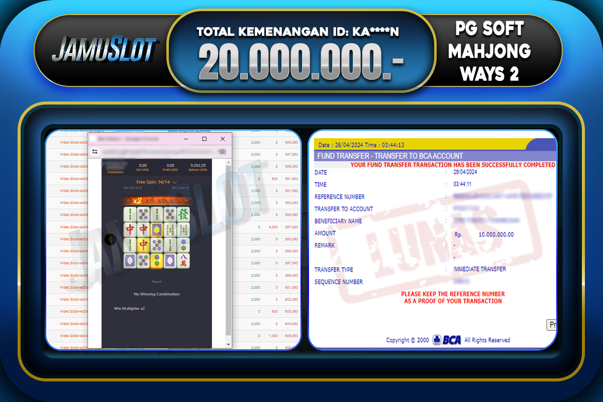 Bukti JP PG SOFT MAHJONG WAYS 2 Di Bayar LUNAS Situs JamuSlot Amanah Sebesar Rp.20.000.000,-