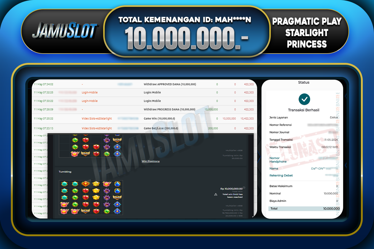 Bukti JP PRAGMATIC STARLIGHT PRINCESS Di Bayar LUNAS Situs JamuSlot Amanah Sebesar Rp.10.000.000,-