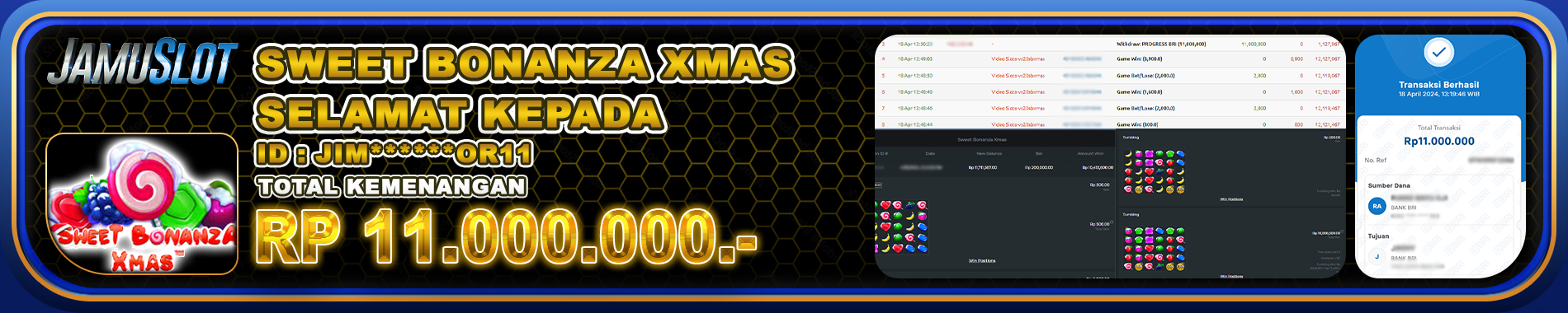 Bukti JP SLOT SWEET BONANZA XMAS Di Bayar LUNAS Situs JamuSlot Amanah Sebesar Rp.11.000.000,-
