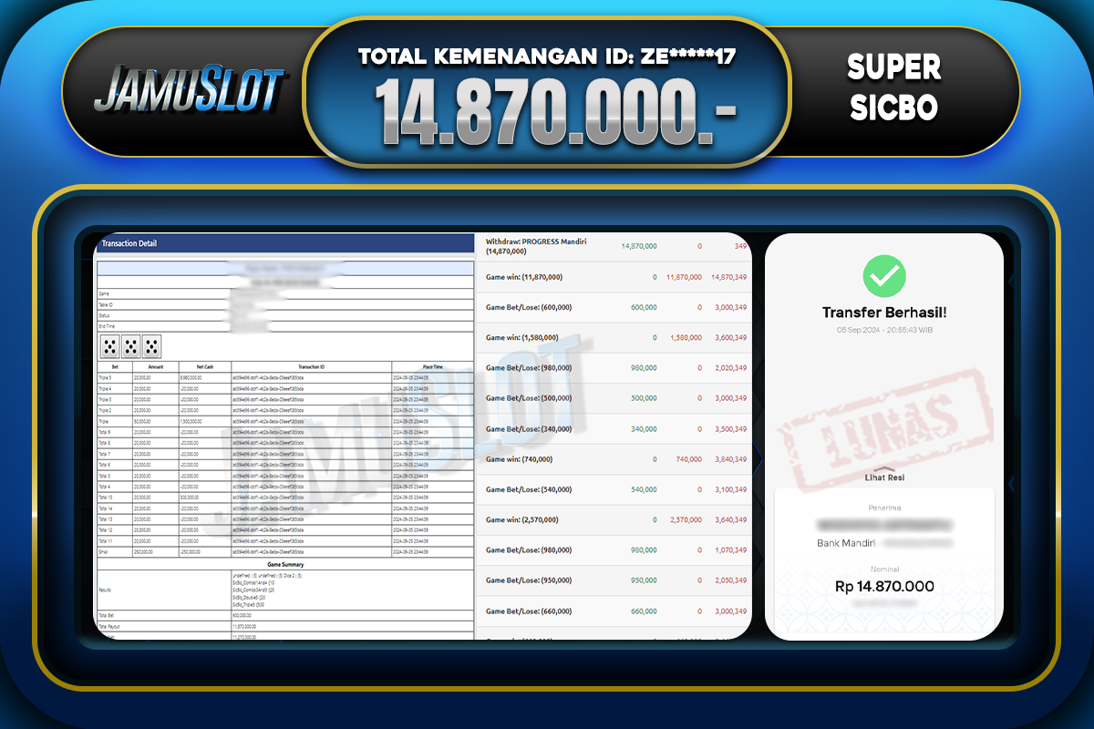 Bukti JP SUPER SICBO Di Bayar LUNAS Situs JamuSlot Amanah Sebesar Rp.14.870.000,-