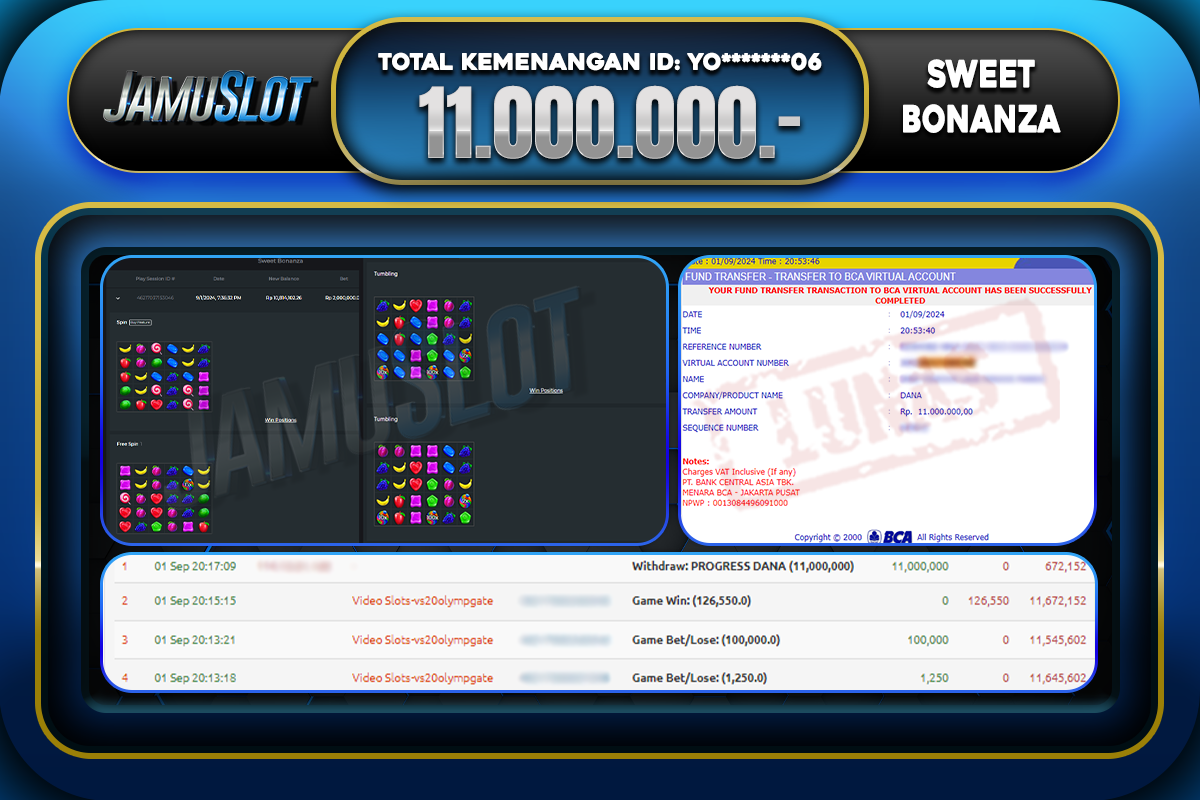 Bukti JP SWEET BONANZA Di Bayar LUNAS Situs JamuSlot Amanah Sebesar Rp.11.000.000,-