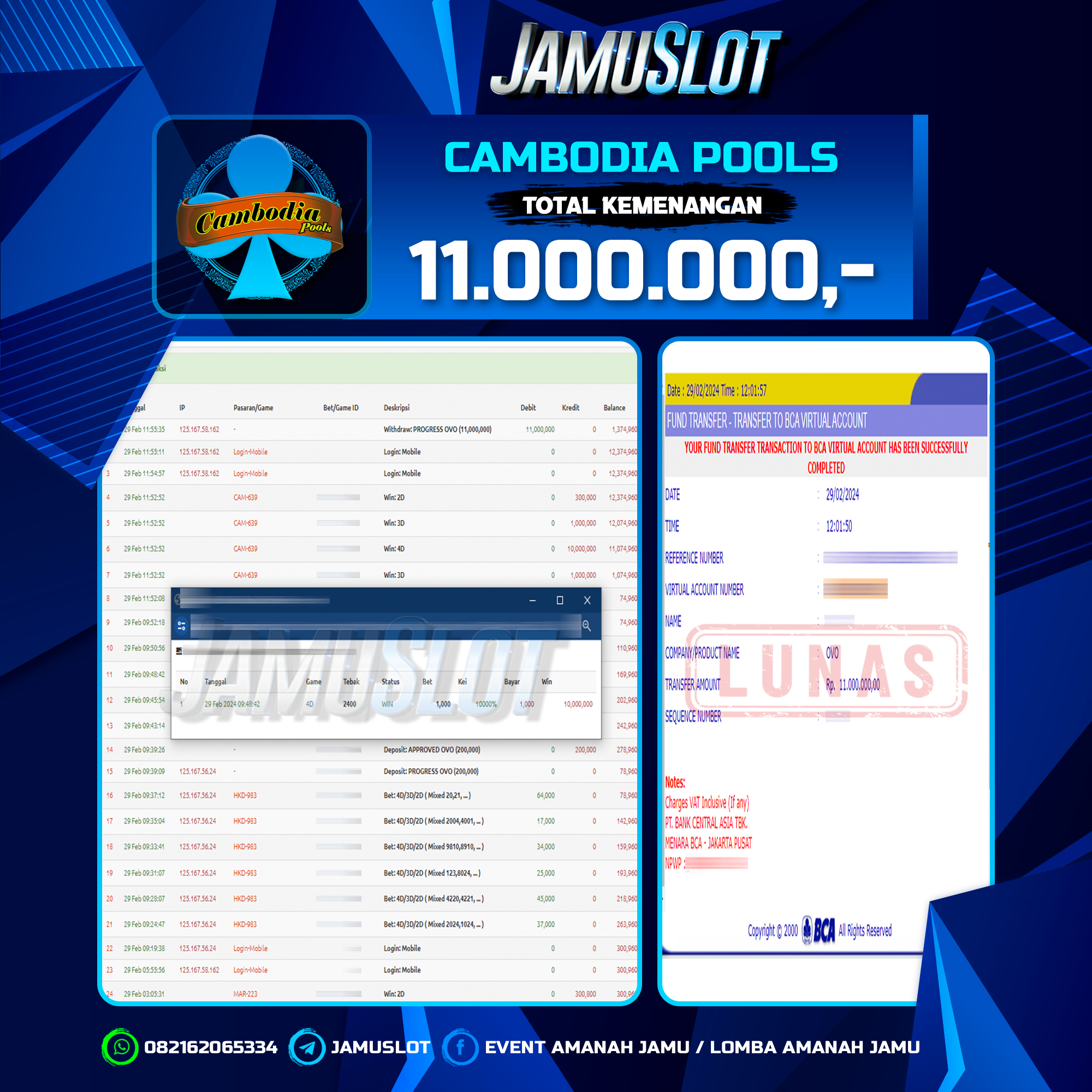 Bukti JP TOGEL CAMBODIA Di Bayar LUNAS Situs JamuSlot Amanah Sebesar Rp.11.000.000,-