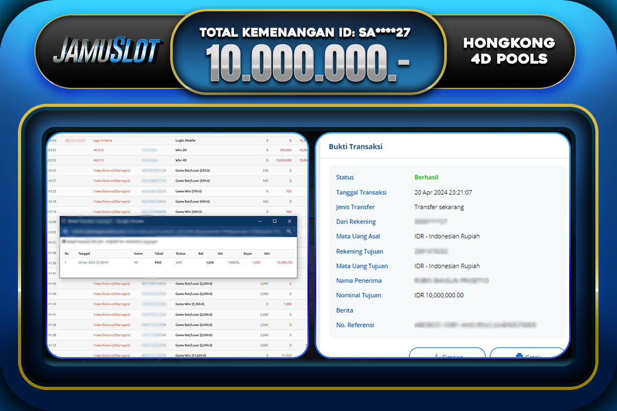 Bukti JP TOGEL HONGKONG 4D POOLS Di Bayar LUNAS Situs JamuSlot Amanah Sebesar Rp.10.000.000,-