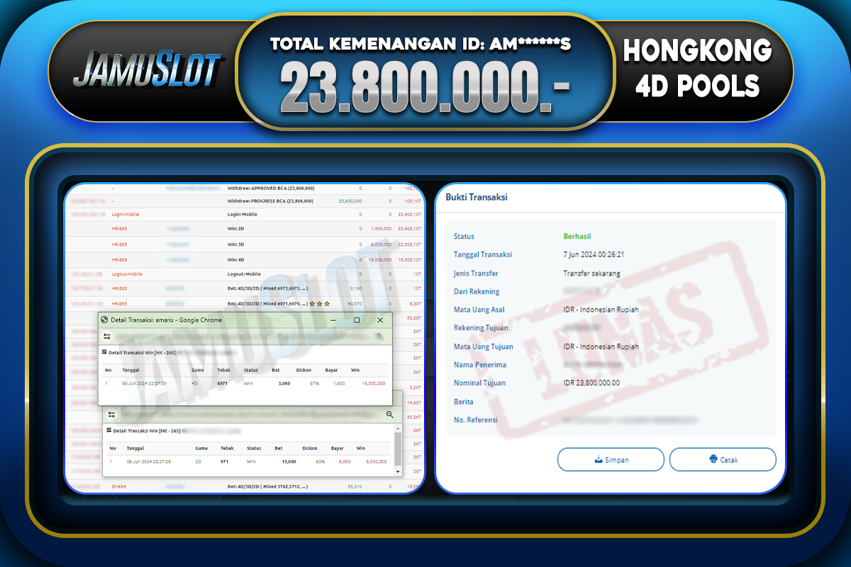 Bukti JP TOGEL HONGKONG 4D POOLS Di Bayar LUNAS Situs JamuSlot Amanah Sebesar Rp.23.800.000,