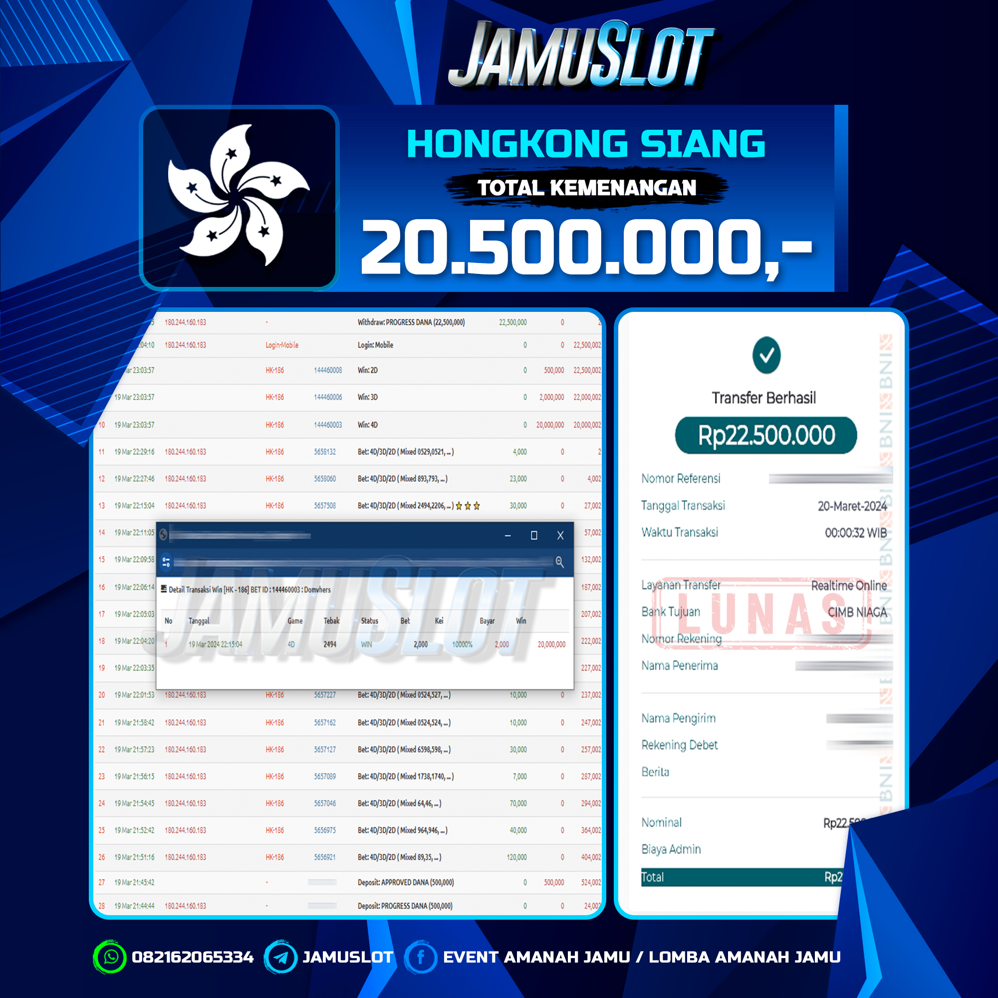 Bukti JP TOGEL HONGKONG SIANG Di Bayar LUNAS Situs JamuSlot Amanah Sebesar Rp.20.500.000,-