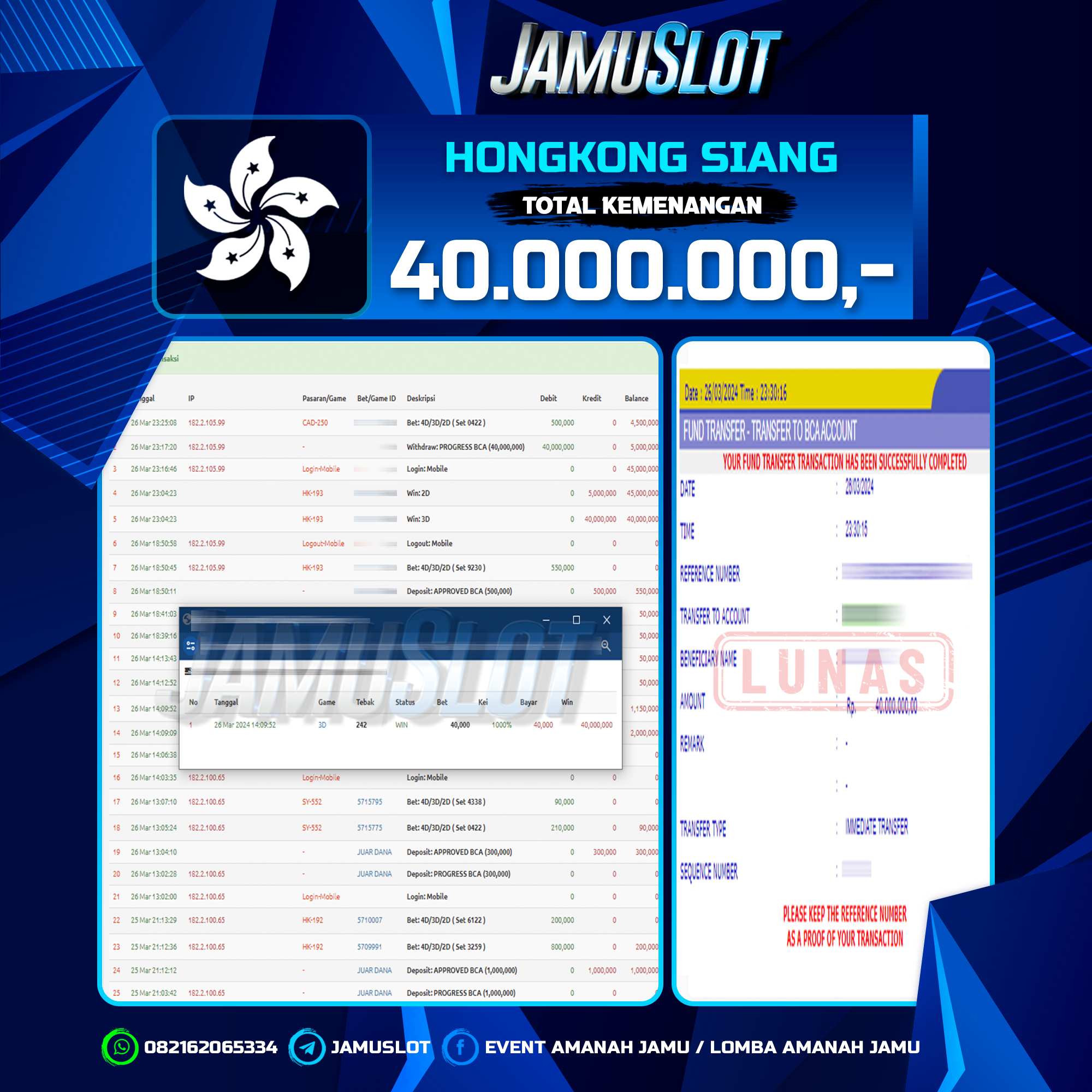 Bukti JP TOGEL HONGKONG SIANG Di Bayar LUNAS Situs JamuSlot Amanah Sebesar Rp.40.000.000,-