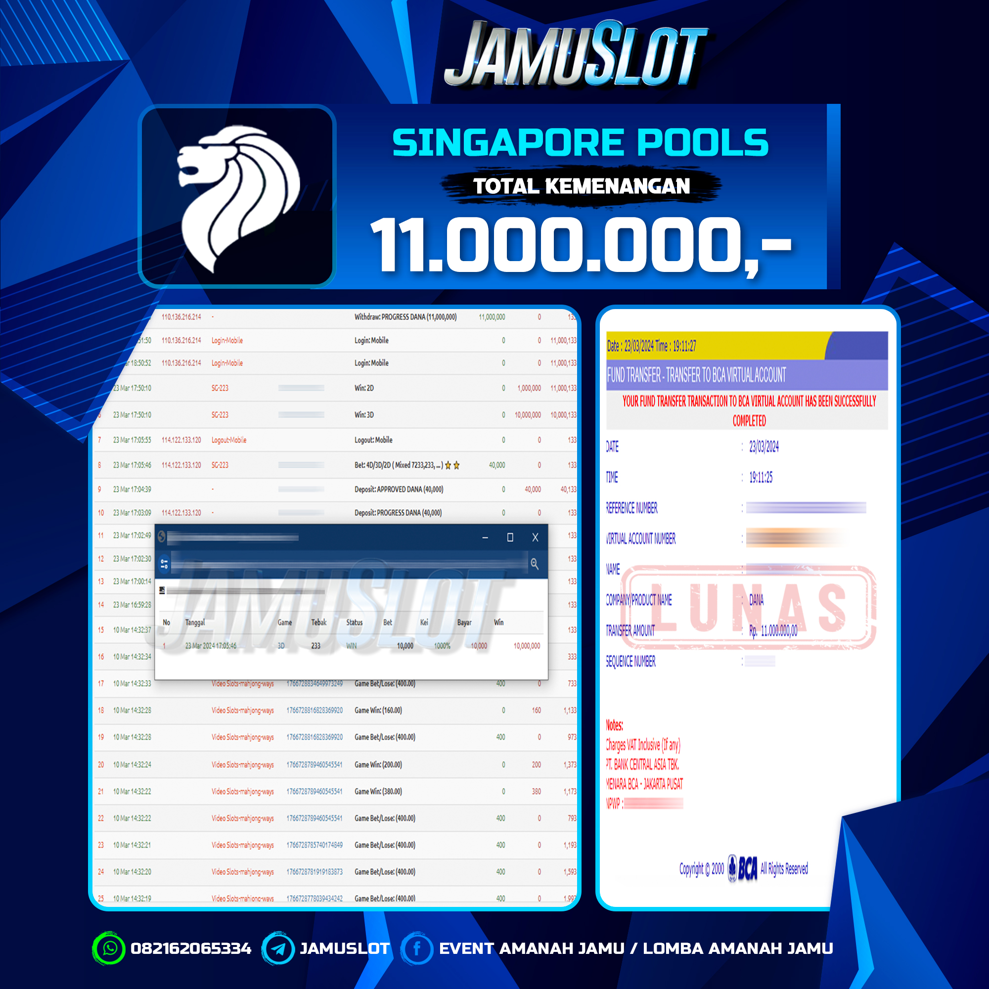 Bukti JP TOGEL SINGAPORE POOLS Di Bayar LUNAS Situs JamuSlot Amanah Sebesar Rp.11.000.000,-