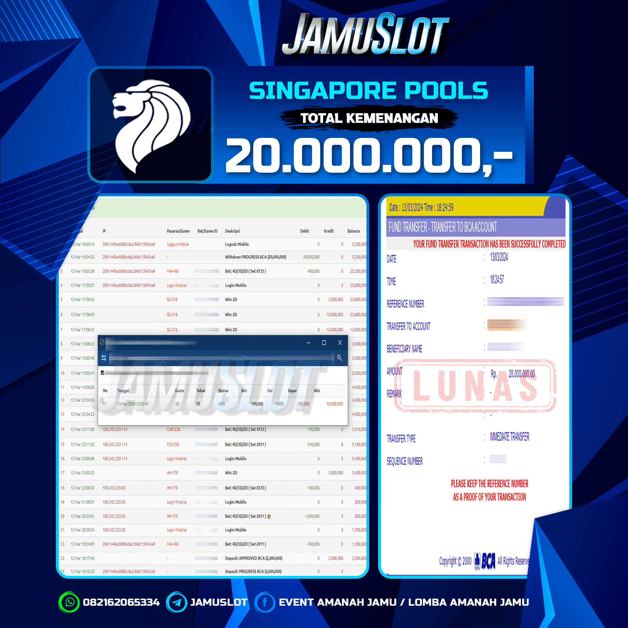 Bukti JP TOGEL SINGAPORE POOLS Di Bayar LUNAS Situs JamuSlot Amanah Sebesar Rp.20.000.000,-