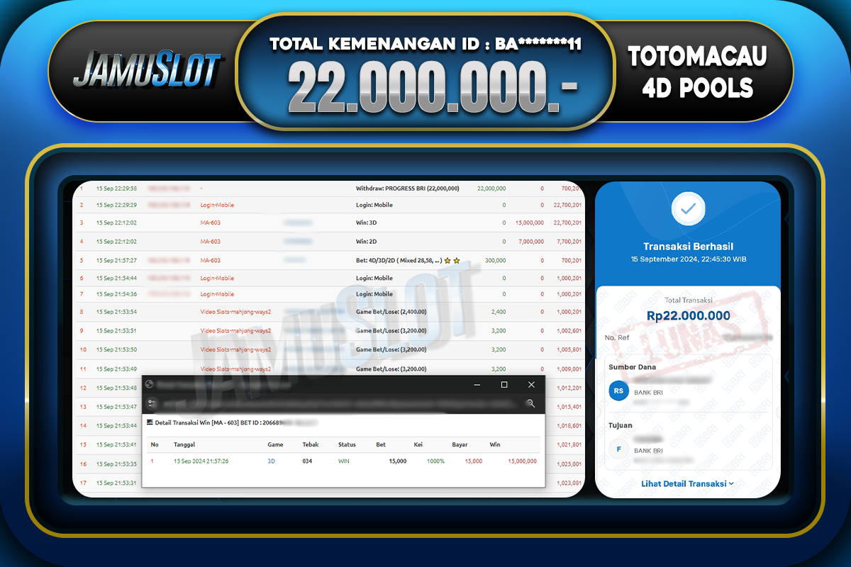 Bukti JP TOTO MACAU4D POOLS Di Bayar LUNAS Situs JamuSlot Amanah Sebesar Rp.22.000.000,-