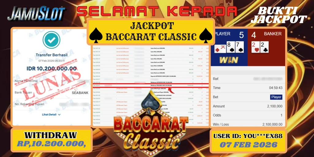 BUKTI PEMBAYARAN KEMENANGAN JP BACCARAT CLASSIC 10.200.000,- LUNAS