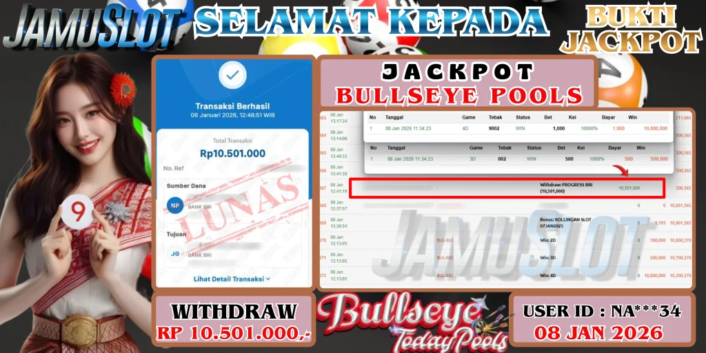 BUKTI PEMBAYARAN KEMENANGAN JP BULLSEYE POOLS SEBESAR 10.501.000,- LUNAS