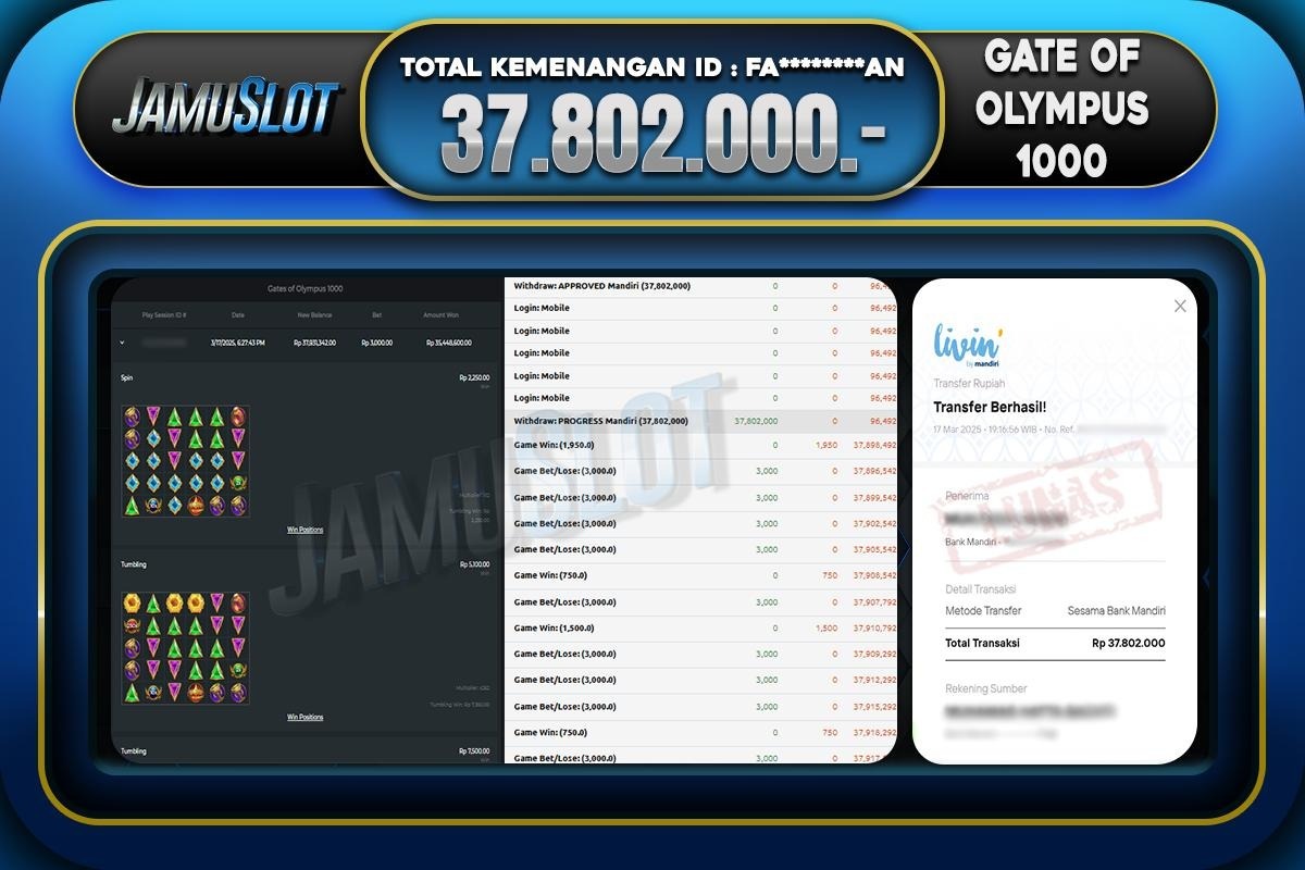 BUKTI PEMBAYARAN KEMENANGAN JP GATE OF OLYMPUS 1000 37.802.000,- LUNAS