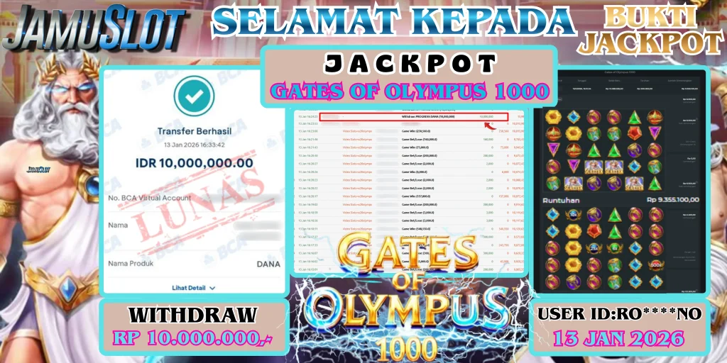 BUKTI PEMBAYARAN KEMENANGAN JP GATES OF OLYMPUS 1000 SEBESAR 10.000.000,- LUNAS