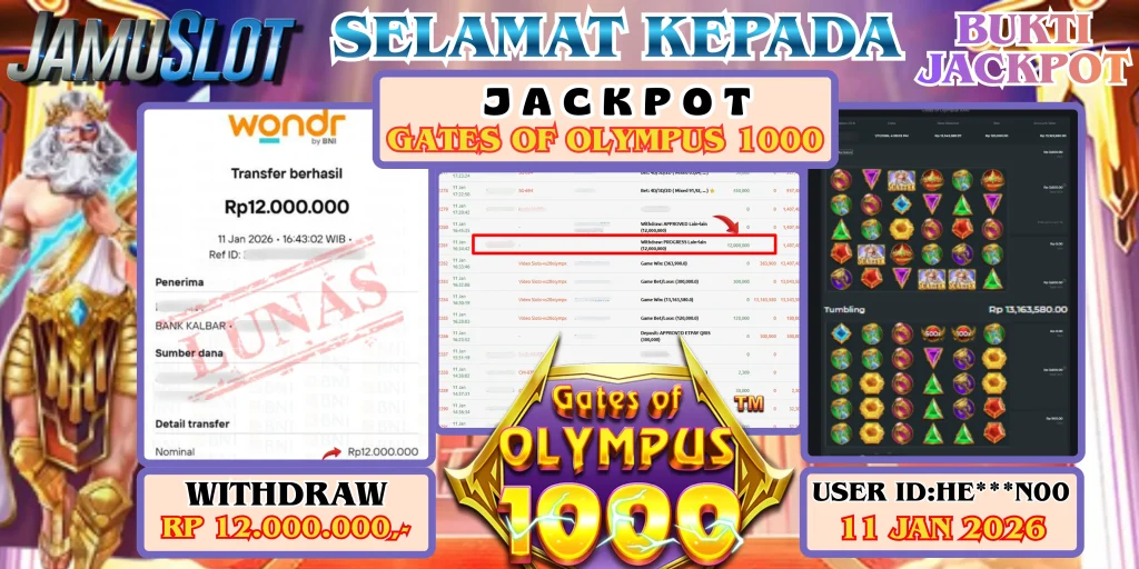 BUKTI PEMBAYARAN KEMENANGAN JP GATES OF OLYMPUS 1000 SEBESAR 12.000.000,- LUNAS