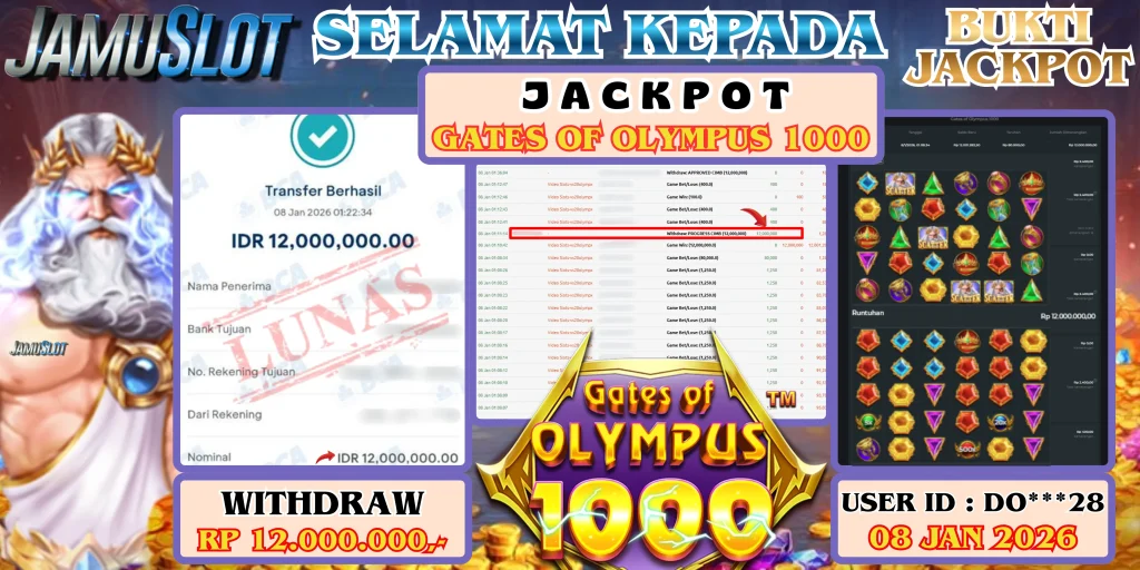 BUKTI PEMBAYARAN KEMENANGAN JP GATES OF OLYMPUS 1000 SEBESAR 12.000.000,- LUNAS