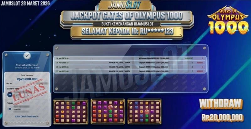 BUKTI PEMBAYARAN KEMENANGAN JP GATES OF OLYMPUS 20.000.000,- LUNAS
