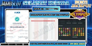 BUKTI PEMBAYARAN KEMENANGAN JP GATES OF OLYMPUS SEBESAR 10.000.000,- LUNAS