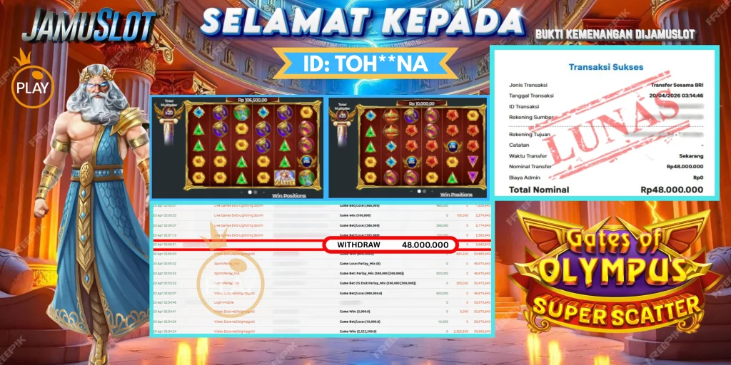 BUKTI PEMBAYARAN KEMENANGAN JP gATES OF OLYMPUS SUPER SCATTER 48.000.000,- LUNAS