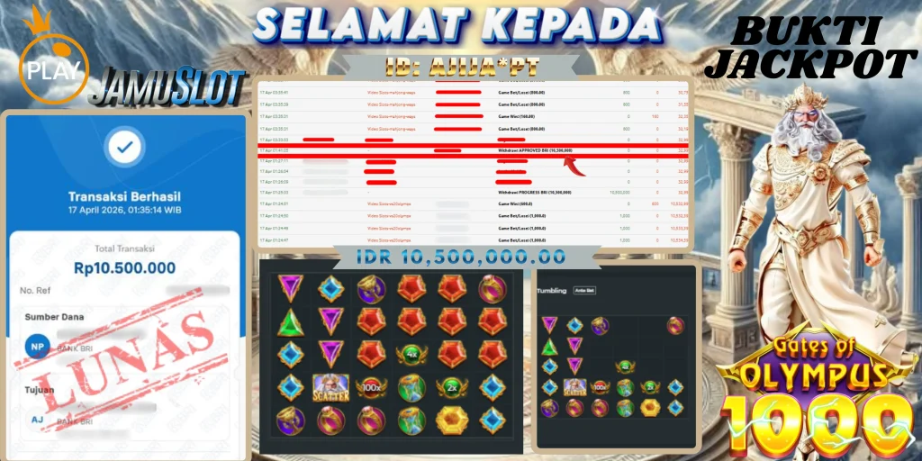 BUKTI PEMBAYARAN KEMENANGAN JP GATES OF OLYMPUS 1000 10,500,000.00,- LUNAS