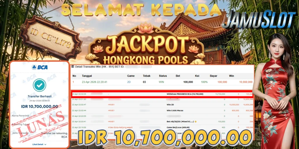 BUKTI PEMBAYARAN KEMENANGAN JP HONGKONG POOLS 10.700.000,- LUNAS
