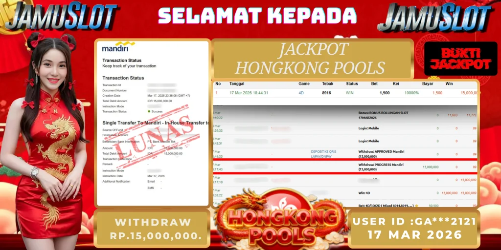 BUKTI PEMBAYARAN KEMENANGAN JP HONGKONG POOLS 15.000.000,- LUNAS