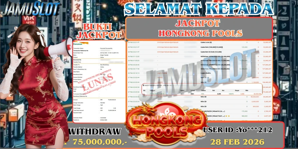 BUKTI PEMBAYARAN KEMENANGAN JP HONGKONG POOLS 75.000.000,- LUNAS