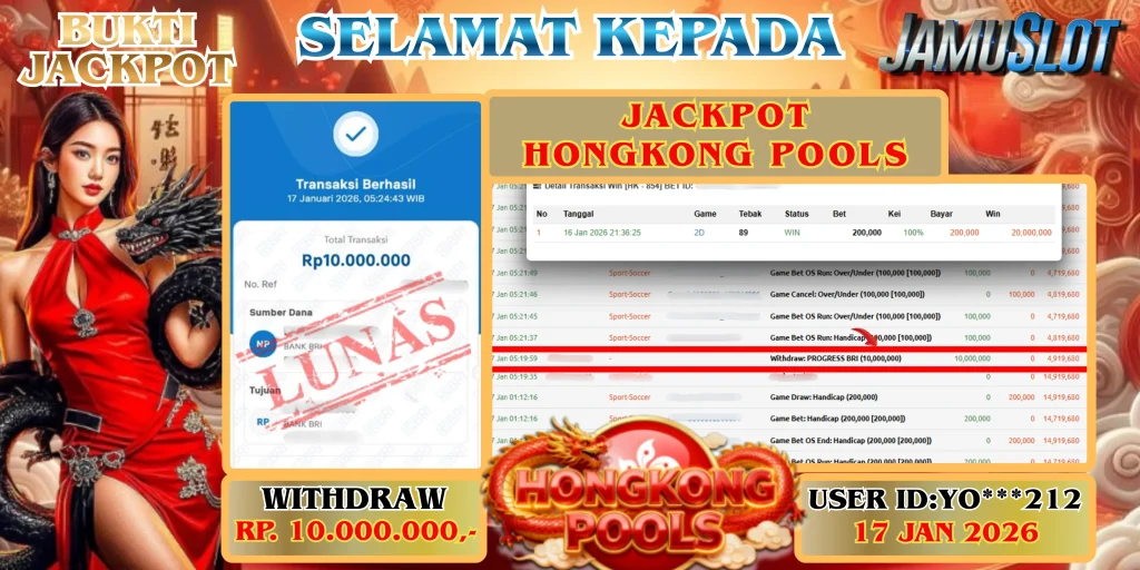 BUKTI PEMBAYARAN KEMENANGAN JP hONGKONG POOLS SEBESAR 10.000.000,- LUNAS