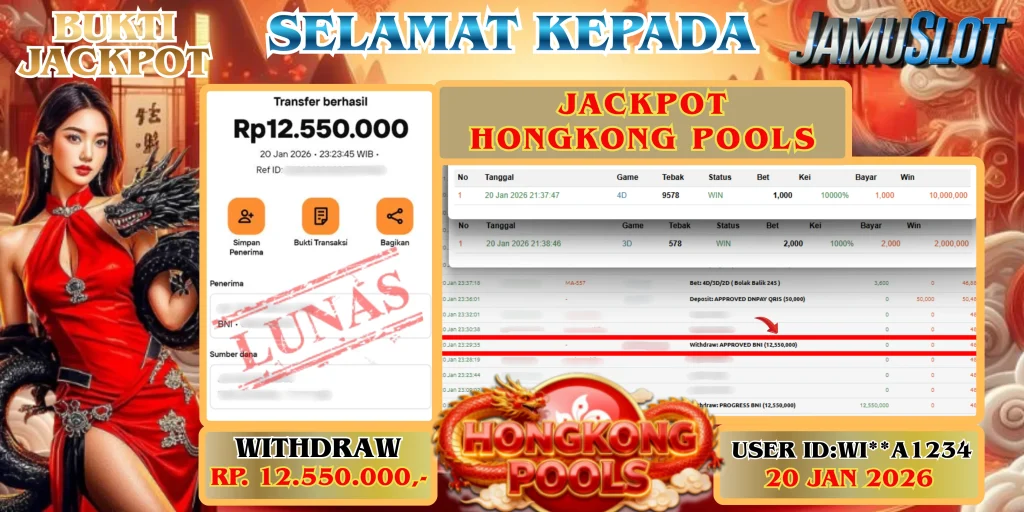 BUKTI PEMBAYARAN KEMENANGAN JP HONGKONG POOLS SEBESAR 12.550.000,- LUNAS