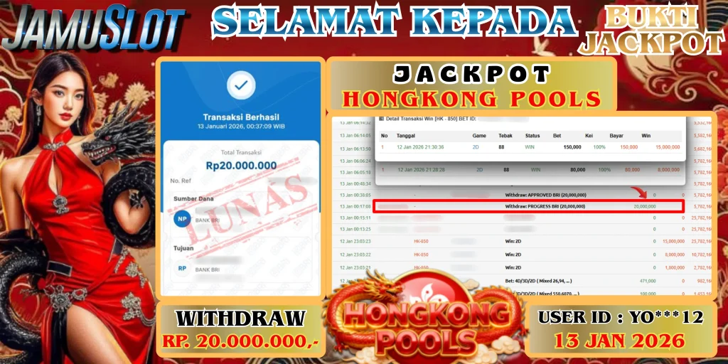 BUKTI PEMBAYARAN KEMENANGAN JP HONGKONG POOLS SEBESAR 20.000.000,- LUNAS