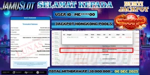 BUKTI PEMBAYARAN KEMENANGAN JP HONGKONG POOLS SEBESAR 30.000.000,- LUNAS