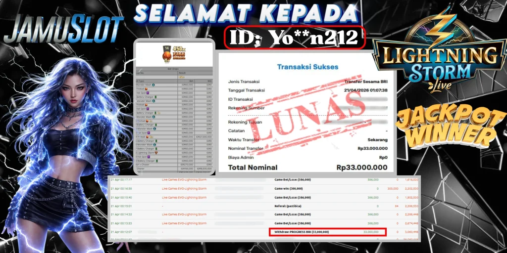 BUKTI PEMBAYARAN KEMENANGAN JP lIGHTNING STROM 33.000.000,- LUNAS