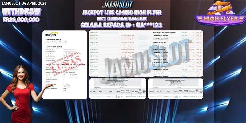 BUKTI PEMBAYARAN KEMENANGAN JP LIVE CASINO HIGH FLYER 25.000.000,- LUNAS