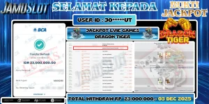 BUKTI PEMBAYARAN KEMENANGAN JP LIVE GAMES DRAGON TIGGER SEBESAR 23.000.000,- LUNAS