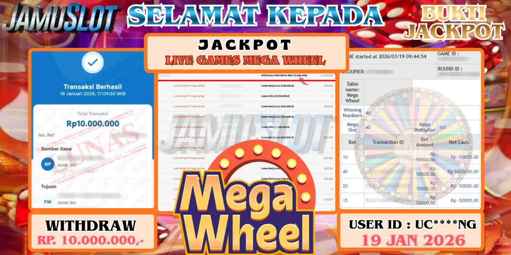 BUKTI PEMBAYARAN KEMENANGAN JP LIVE GAMES MEGA WHEEL SEBESAR 10.000.000,- LUNAS