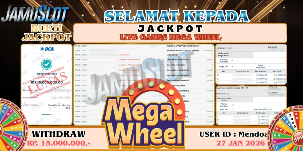 BUKTI PEMBAYARAN KEMENANGAN JP LIVE GAMS MEGA WHEEL 15.000.000,- LUNAS