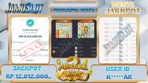 BUKTI PEMBAYARAN KEMENANGAN JP MAHJONG WAYS 12.012.000,- LUNAS
