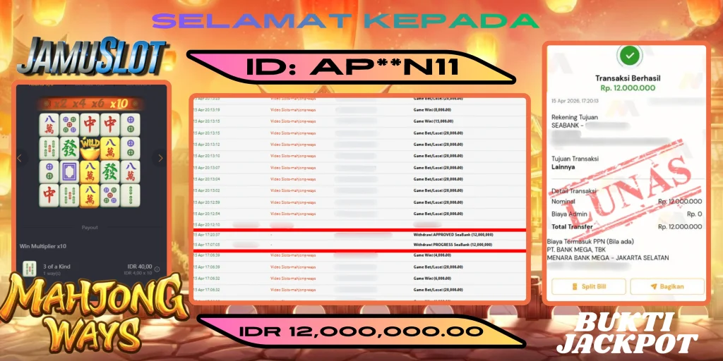 BUKTI PEMBAYARAN KEMENANGAN JP MAHJONG WAYS 13.800.000,- LUNAS