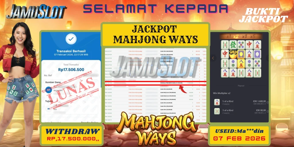 BUKTI PEMBAYARAN KEMENANGAN JP MAHJONG WAYS 17.500.000,- LUNAS
