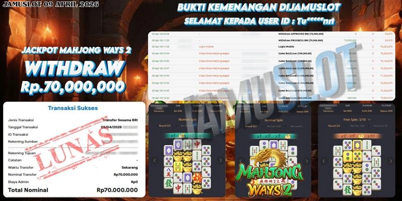 BUKTI PEMBAYARAN KEMENANGAN JP MAHJONG WAYS 2 70.000.000,- LUNAS